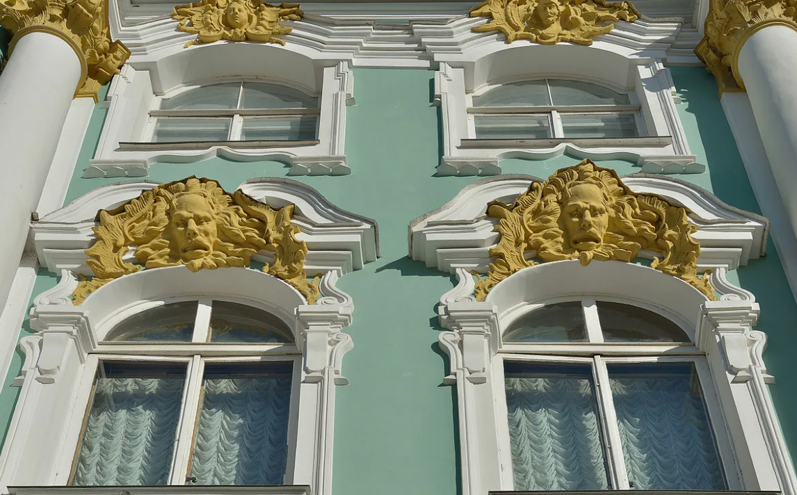 - Барокко (XVIII век): высокие арочные окна с лепными наличниками, часто с «ушами» и замковыми камнями. Символизируют торжественность и роскошь. Пример — фасады Зимнего дворца.