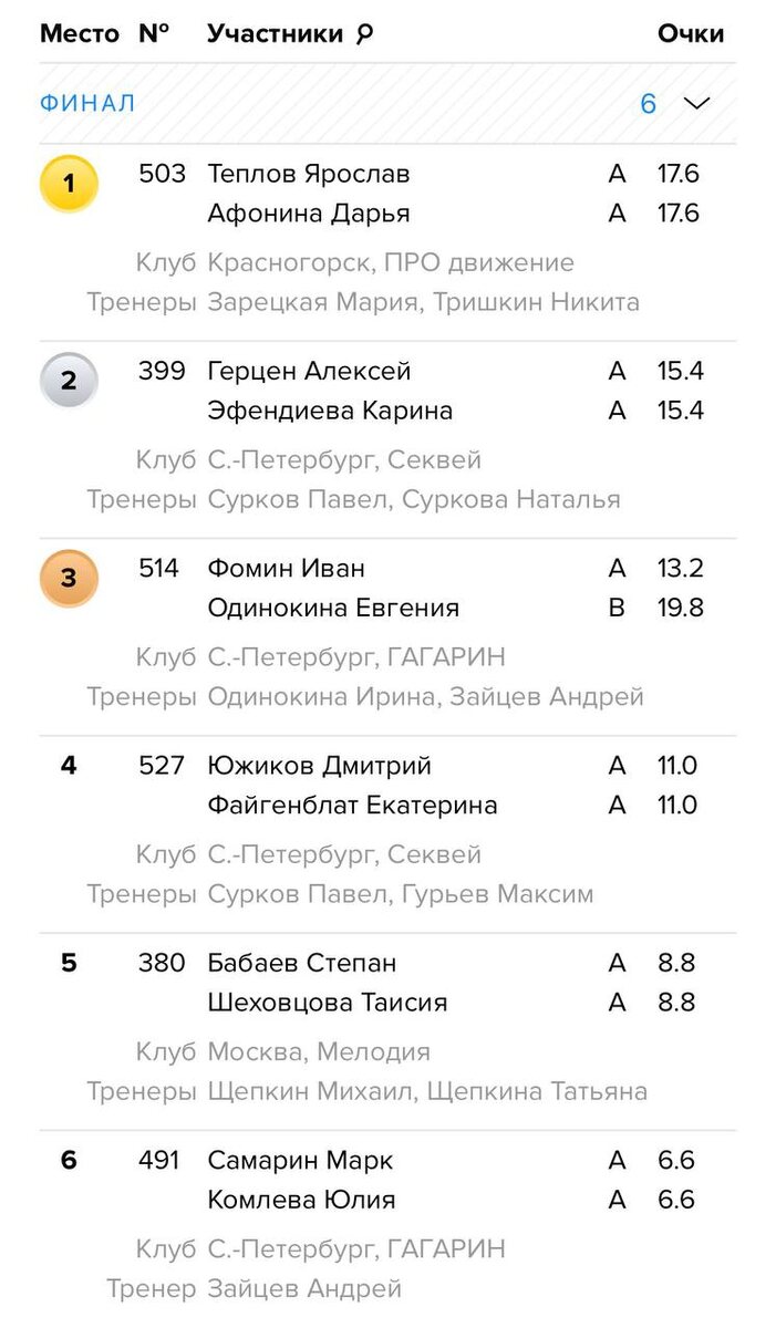 Результаты ВС Юниоры 2 Европейская программа 🏆