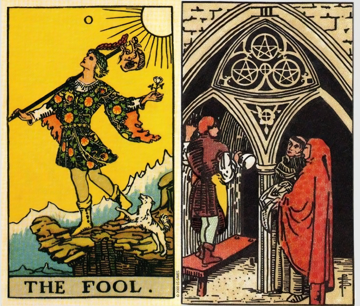 Наивный, но полный энтузиазма новичок (Шут) приходит учиться, вливается в команду и начинает оттачивать своё мастерство через практическую, часто ручную, работу (3 Пентаклей).