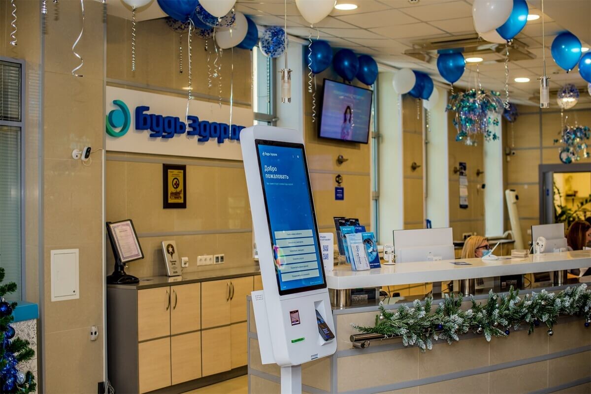 Сеть многопрофильных медицинских центров «Будь здоров» начала поэтапное внедрение терминалов самообслуживания TOUCHPLAT, объединяющих функции электронной регистратуры и кассы. Новое оборудование уже установлено в нескольких клиниках в Москве. В планах - распространить этот опыт на всю сеть, охватывающую города Санкт-Петербург, Казань, Уфа, Краснодар, Сочи, Усть-Лабинск и Каменск-Уральский. Терминалы выполняют важные операции в зоне приема пациентов: запись к