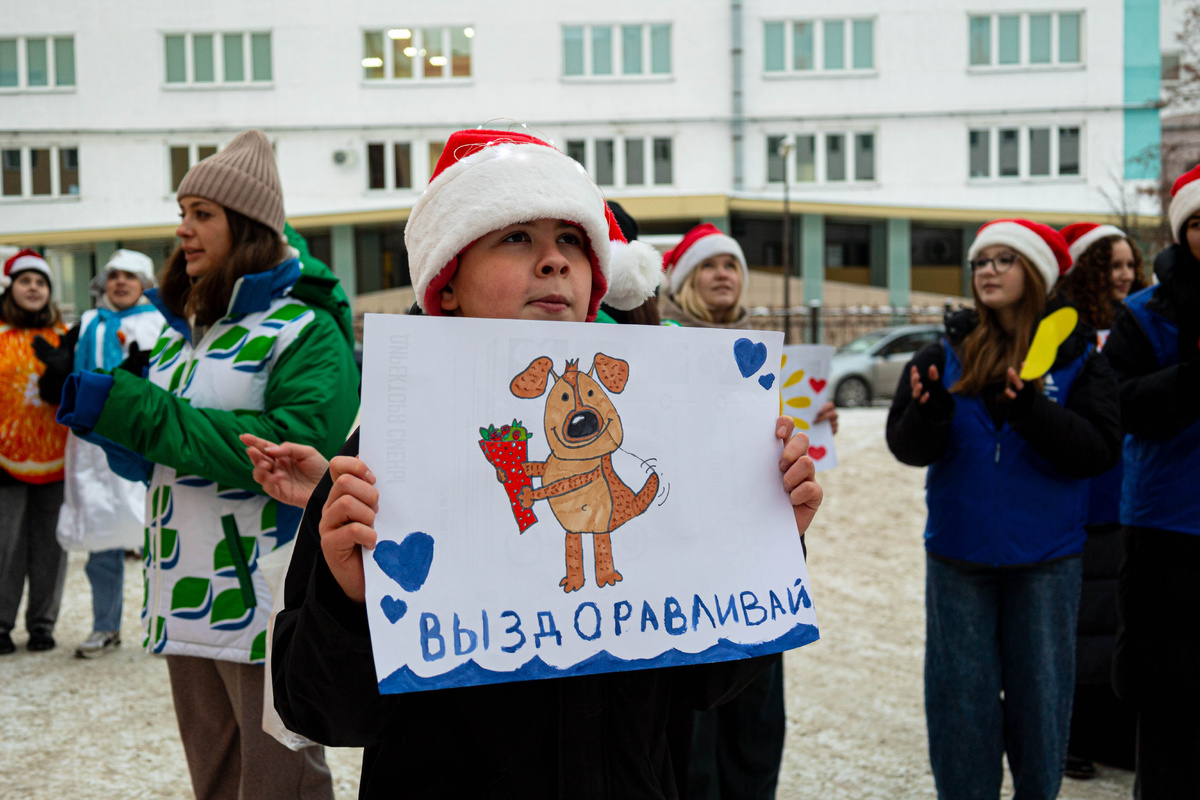 Смех и веселье тем, кто борется за жизнь. Под окнами детского онкоотделения устроили «ёлку»