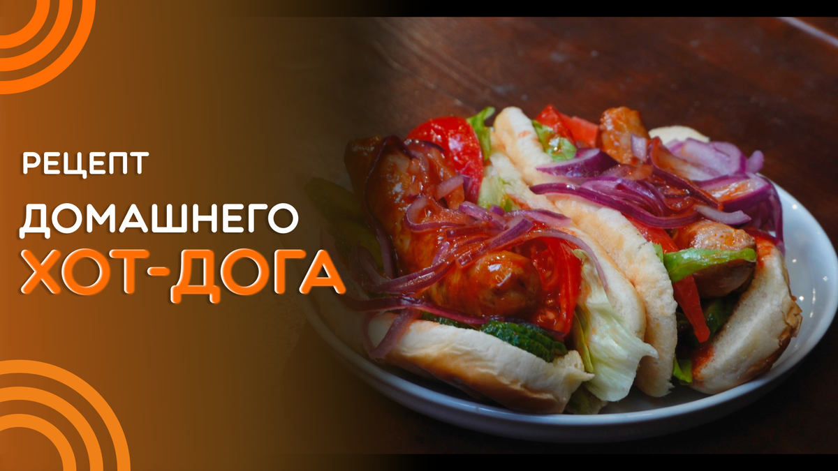 В булочку выложить салат, колбаску, лук, огурцы, полить соусом барбе