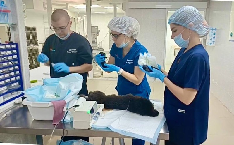 Таким образом на свет появилось трое здоровых щенков. Мама с малышами в этот же день были выписаны домой.
