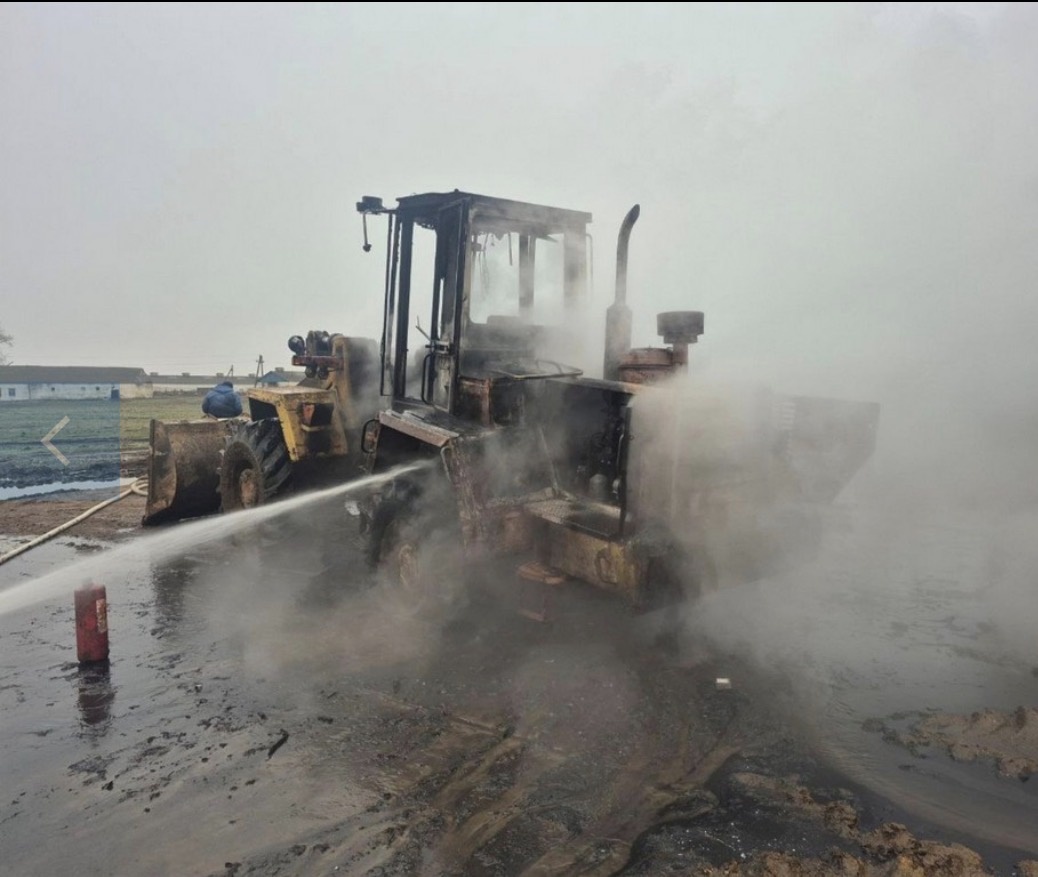 По прибытии к месту вызова происходило открытое горение фронтального погрузчика на территории молочно-товарной фермы.