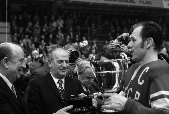 На чемпионате мира и Европы 1971 года, который проходил в Швейцарии, ситуация складывалась таким образом, что сборной СССР «кровь из носу» нужно было побеждать в последнем матче шведов, которые выше третьего места уже подняться никак не могли. Понимая это, накануне игры со сборной СССР хоккеисты «Тре Крунур» с размахом обмывали добытую ими бронзу. Гуляли шумно – в курсе оказались даже постояльцы отеля, включая наших спортсменов. Шведы не только сами расслабились, но и ослабили бдительность советских игроков – никто из них не ожидал отчаянного сопротивления от скандинавов. И вот, после двух периодов шведские хоккеисты были впереди - 3:2. Дождавшись перерыва разгневанный Анатолий Владимирович Тарасов устроил своим игрокам настоящую порку, обронив в сердцах: «Что же это такое!? Это разве игроки сборной!? Вы даже пьяных шведов не можете обыграть!» Надо сказать, что воспитательный приём сработал на отлично - обвинение тренера задело самолюбие его подопечных. Получившие взбучку от Тарасова хоккеисты «Красной машины» в заключительной двадцатиминутке камня на камне не оставили от «пьяных шведов», забросили в их ворота четыре безответные шайбы, и в 11-й раз завоевали золото мирового чемпионата. А между тем, именно это первенство планеты поспособствовало тому, чтобы впервые сборную СССР по хоккею в зарубежной прессе окрестили «Красной машиной». 22 марта 1971 года советские хоккеисты разгромили сборную США со счётом 10:2, и уже на следующий день газета «Toronto daily star» на своих страницах поместила заметку под громким заголовком: «Big Red Mashine keeps rolling on» (Большая Красная Машина продолжает катиться вперед): «Хоккейная команда Big Red Machine сегодня отдыхала, готовясь к завтрашнему важному матчу с Чехословакией. До сегодняшнего дня, во время чемпионата мира по хоккею, сборная СССР крушила соперников на мелкие кусочки, и лишь шведы и чехи - единственные участники турнира из шести стран, имеют хоть какой-то шанс огорчить русских… Американцы уже жалуются на множество травм и ушибов, в том числе и у своего основного вратаря Карла Ветцеля из «Детройта», у которого оказалось растяжение подколенного сухожилия... Русские лидируют на турнире с шестью очками после трёх побед, за ними следует сборная Швеции с четырьмя очками».