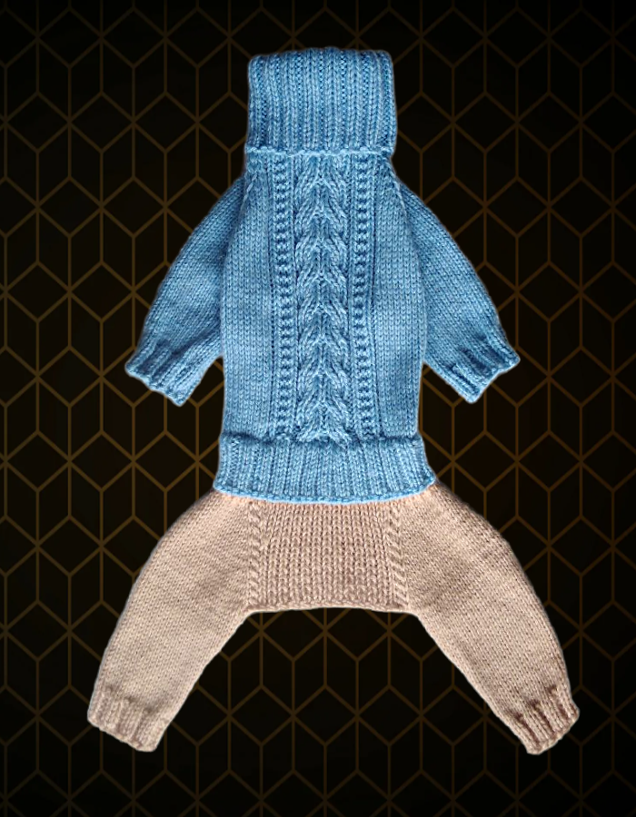 Вязаный комбинезон для маленьких собак тёплый и нарядный.