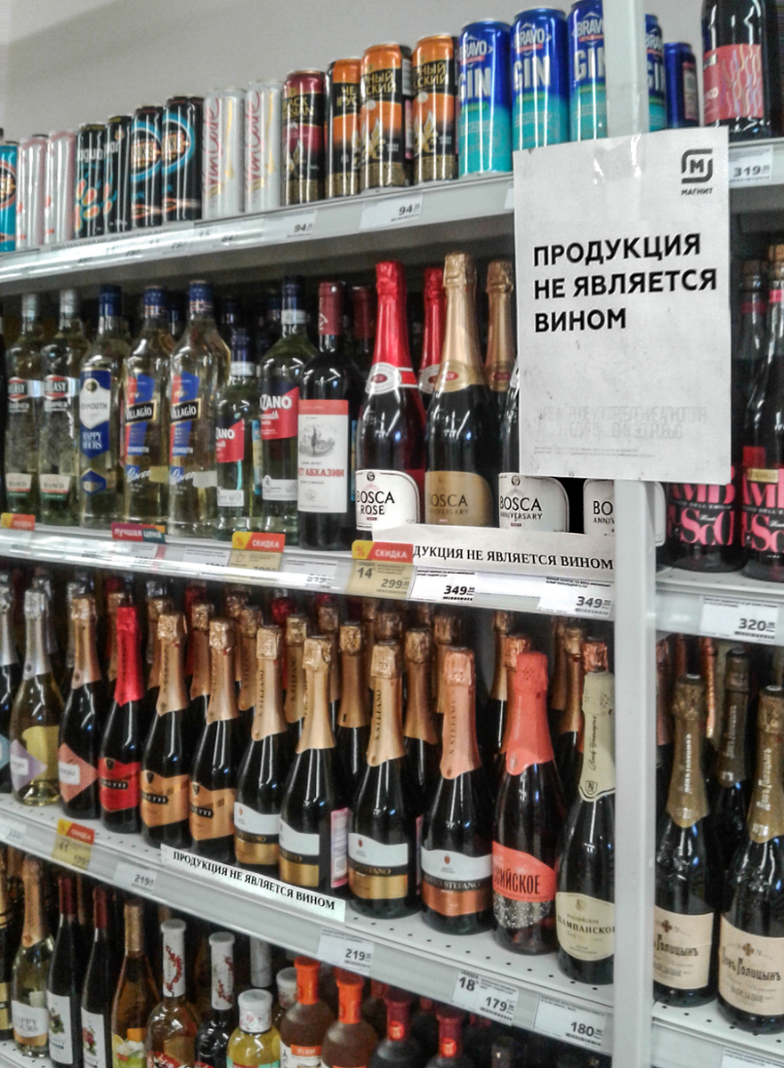Если там написано «Виноградосодержащий напиток», «Винный напиток» или «Коктейль винный» — ставьте это обратно. Это НЕ ВИНО.
