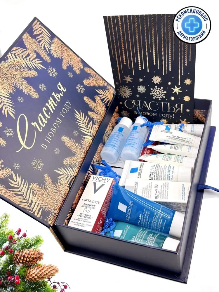 Изысканный новогодний подарок от Лярош позе и Виши в книге-коробке "Золото Шар" для нее - это ежедневный уход для кожи, подверженной агрессивным внешним воздействиям. Идеальное решение для тех, кто хочет познакомиться с этим известным французским брендом или взять любимые продукты с собой в путешествие. Цена: 1665 руб. Ссылка: https://ozon.ru/t/IFhxmI9
