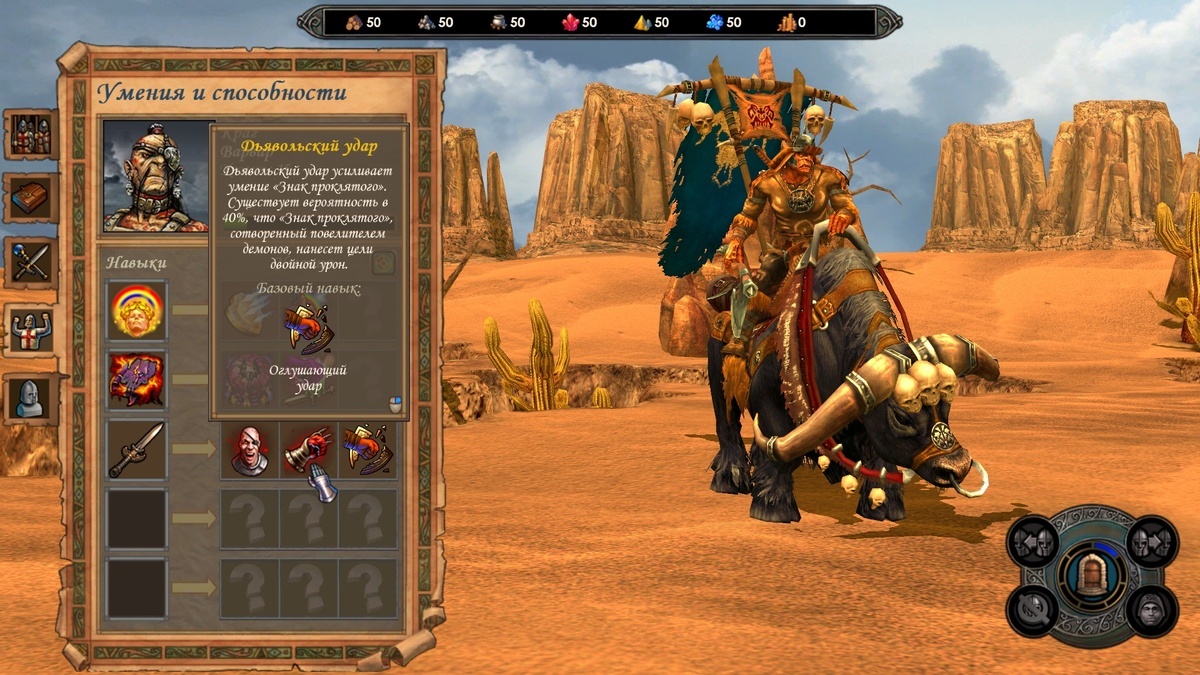 Эти ребята очень любят наносить уроны с руки, а у варваров и выбор-то небогатый, максимум 9 вариантов действий: 1 из 6 кличей дать, если они есть, дать "Воодушевление" или "Подмогу", если они вкачаны, или же самому ударить кого-то. У повелителя демонов опций за счёт магии может быть куда дольше, да и маны у них обычно много, правда, из-за "Адского огня" — когда дело дойдёт до демонов, разберу это, но пока замечу, что он жрёт ману при своём срабатывании.