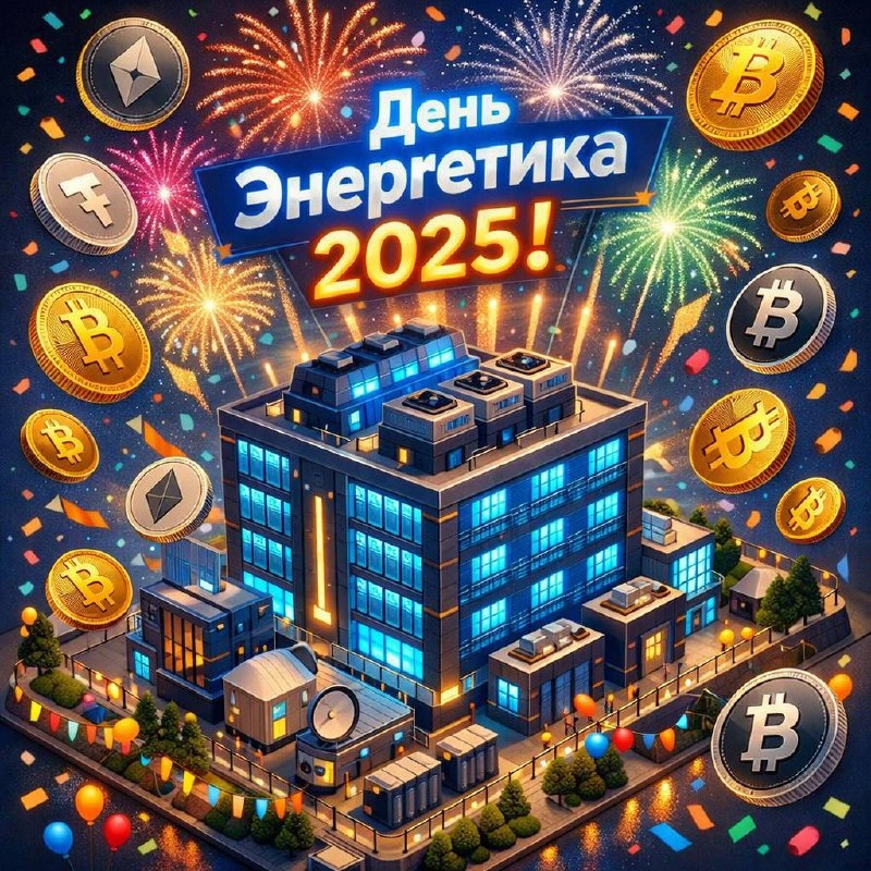 ! ⛏Ни для кого не секрет, что с данным праздником по праву можно поздравить и операторов майнинговой инфраструктуры, в деятельности которых вопросы электроэнергии занимают первостепенное значение. 🎉Желаем вам высоких запасов внутренней энергии, и чтобы потраченные силы всегда оборачивались вдохновением и результатами! С праздником, коллеги! 1️⃣2️⃣3️⃣4️⃣ Телеграм | Сайт