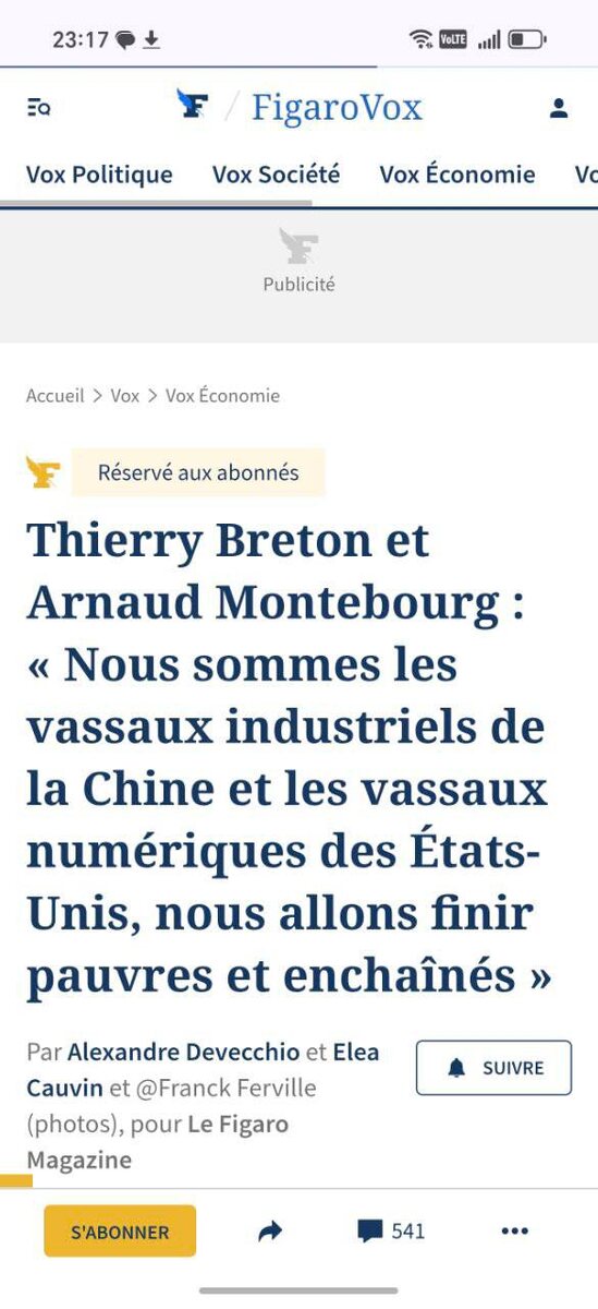 " Французское издание Le Figaro вынесло в заголовок цитату из интервью Тьерри Бретона, который до 16 сентября 2024 года занимал пост европейского комиссара по вопросам внутреннего рынка. ⏩ P.S. Оставайтесь с нами и будьте в курсе всего самого интересного! 🔷Подпишись на канал https://dzen.ru/id/63d7a34be120020aa9307269 #новости #мир #общество