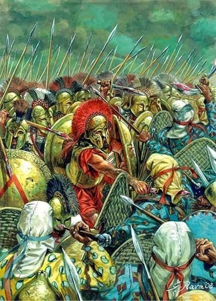 После получения известия от фокийцев об обходе персами оборонительной позиции эллинов в Фермопильском проходе по Анопейской тропе, царь Спарты Леонид разрешил союзным отрядам заблаговременно отступить, а сам с отрядом своих воинов дал последнее сражение противнику на равнинной местности. По сообщению Геродота со спартанцами остались феспийцы, численностью в семьсот гоплитов и фиванцы, количеством в четыреста человек, которые уклонились от боя и немедленно сдались персам при их приближении. По свидетельству Диодора в отряде спартанцев Леонида также находилась тысяча лакедемонян. После уничтожения на холме Колонос последних защитников Фермопил, по словам Геродота, во главе с царем Ксерксом: «Много людей захотело смотреть тела павших. Они смотрели, проходя по рядам мертвых тел. Все верили, что лежавшие там мертвецы были только лакедемоняне и феспийцы (за них же считали и илотов). Павшие эллины – четыре тысячи мертвых тел – все вместе были свалены в одно место». Исходя из общей численност