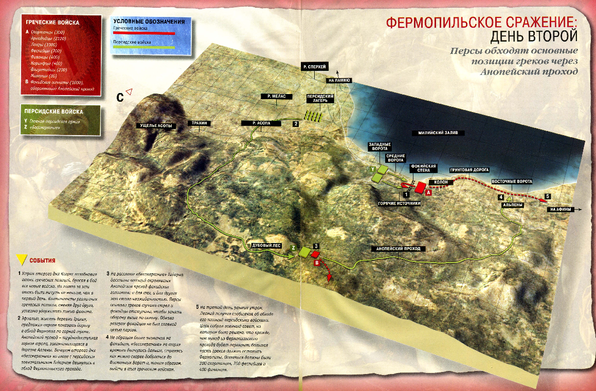 Недавние исследования геологов топографии местности в Фермопилах показали, что древняя береговая линия не соответствует современным очертаниям побережья. Богатая плодородным илом река Сперхиос сформировала на месте Фермопильского прохода широкую равнину и сделала болотистыми берега Малиакского залива. В настоящее время его берега отступили на восток от пяти до девяти километров, покрыв двадцатиметровыми наносными отложениями место сражения объединенного эллинского войска с персидской армией в 480 году до новой эры. В связи с данным утверждением я прочитал статью «Битва при Фермопилах. Фокидская стена. Вопрос о наносах» и процитирую аргументированный анализ недоуменного любителя истории: «Общеизвестно, что аллювиальные конуса выноса/отложения привели к тому, что на поле боя у Фермопил отложилось примерно двадцать метров осадочных пород (конкретно для 480 года до новой эры). Я также полагаю, что общепринято, что проход был шириной примерно 15-30 метров с отвесными скалами с южной сторон