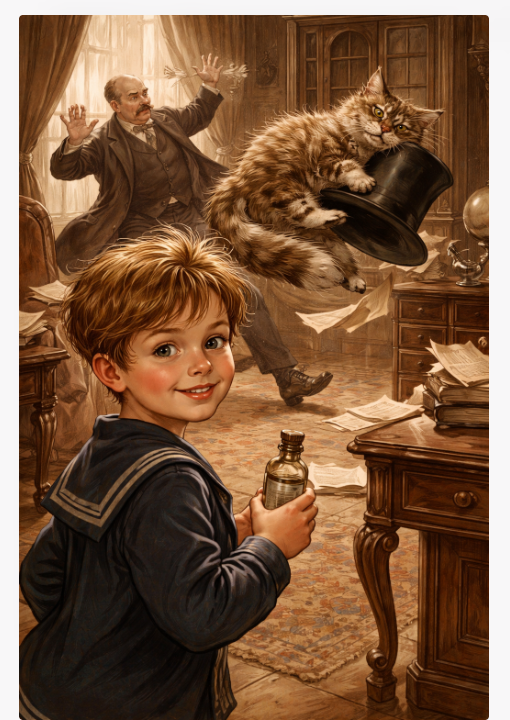 Петечка видел, как разлила няня однажды, так, немного, несколько капель, так кот, Ерофей, что вытворял.