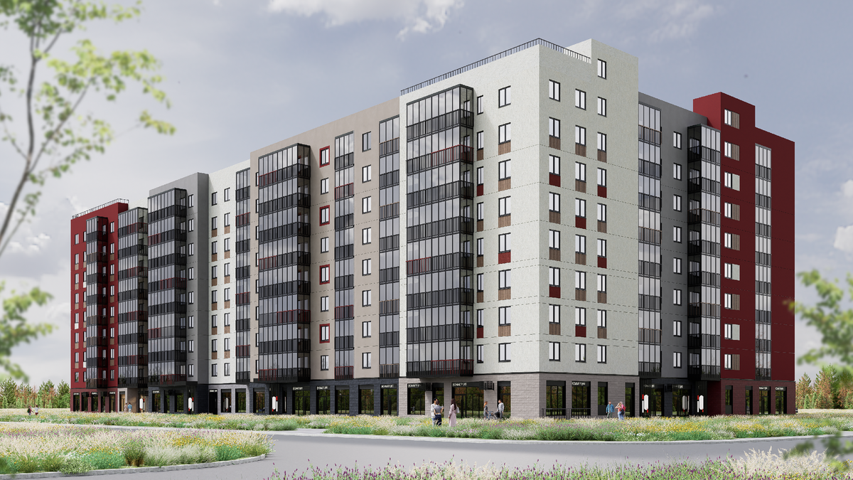Новый 9-этажный дом рассчитан на 280 квартир: от компактных студий до просторных трехкомнатных планировок. Квартирография продумана так, чтобы пространство использовалось эффективно даже в небольших форматах. На первых этажах предусмотрены коммерческие помещения, формирующие повседневную инфраструктуру квартала.