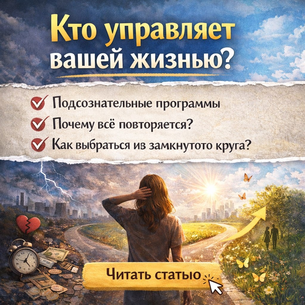 ? Мы искренне думаем, что все понимаем и осознаем, но в жизни почему-то продолжают крутиться одни и те же сценарии: деньги - рывками, отношения - «не те», энергии - на нуле, а внутри тревога или пустота. И это не потому, что вы «не стараетесь», «ленитесь» или «не умеете». Чаще всего вашей жизнью рулит подсознательная программа. В новой статье я простым человеческим языком разобрала: ✔️какие программы чаще всего управляют людьми из моего практического опыта; ✔️почему они сильнее логики и не дают сдвинуться с места; ✔️как проверить у себя наличие таких программ и какой путь выхода из них. 📌Читать статью Следующий шаг⬇️ Увидели программы у себя? Переходите от диалога с собой - к диалогу со мной. Бесплатная диагностика - это ваша отправная точка. За 60 минут мы выясним: 🔸Ваш текущий запрос. 🔸Реальный маршрут на 1-3 месяца. 🔸Нашу с вами совместимость для работы. 🪄Нажмите «ЗАПИСАТЬСЯ» и обретите свою опору, выстройте гармоничные отношения и реализуйте свой потенциал в деле души.