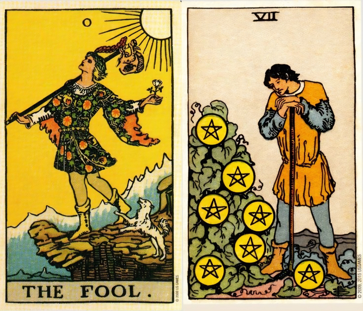 Сочетание Шута и Семерки Пентаклей — это урок веры и терпения. Оно напоминает, что не всё в жизни мгновенно. За смелым прыжком в новое (Шут) почти всегда следует период, когда нужно закатать рукава и день за днём трудиться, не видя немедленных результатов.
