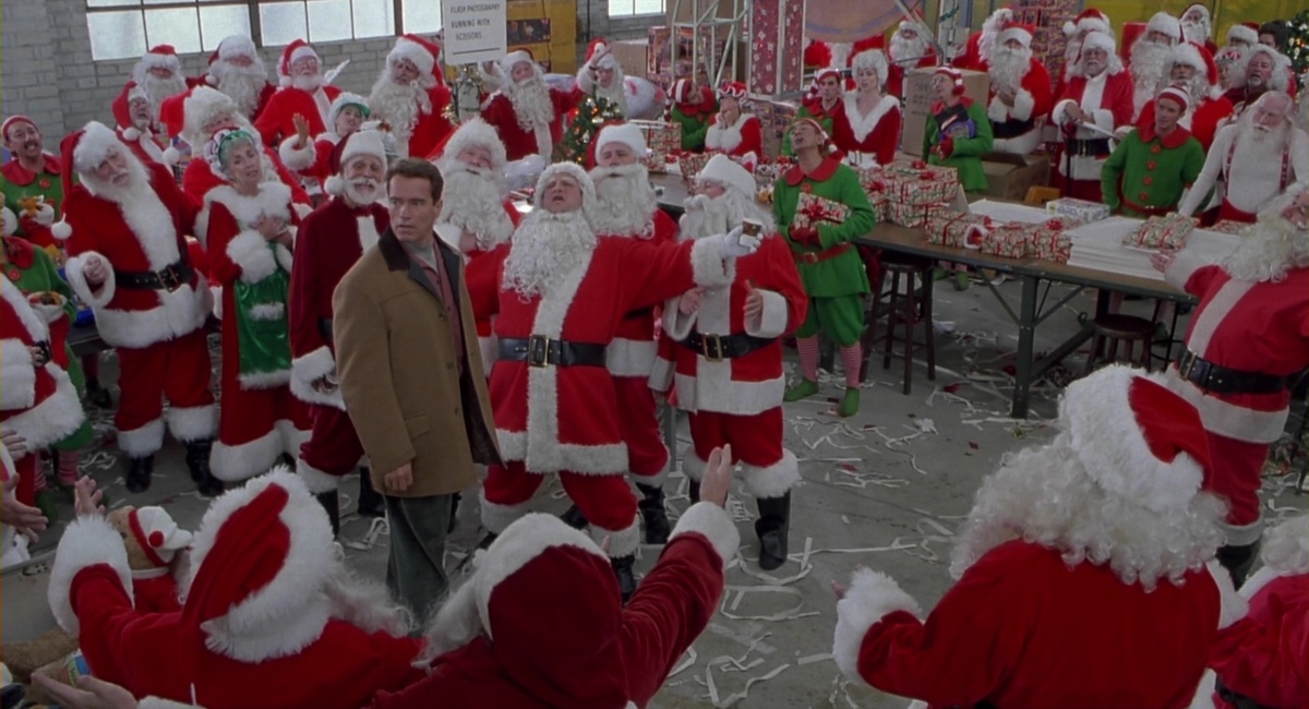 Я заметил, что в 90-е годы в США была напряжённая криминогенная обстановка. Рождественский рынок подарков находился в руках преступных группировок, выдающих себя за Санта-Клаусов. Если обычный человек попадется в их сети, он мог не вернуться домой к рождественскому столу. Террористическая угроза высока: безобидная посылка с подарком может оказаться бомбой. Улицы города оказались под контролем организованной преступности. Машина, оставленная на улице днем, рисковала быть разобранной. Поэтому военные технологии достигли такого уровня, что даже частные компании, специализирующиеся на игрушках, могли создать настоящий прототип костюма суперсолдата. Всё о кино 0 постов • 0 подписчиков Подписаться Добавить пост Подробнее о правилах