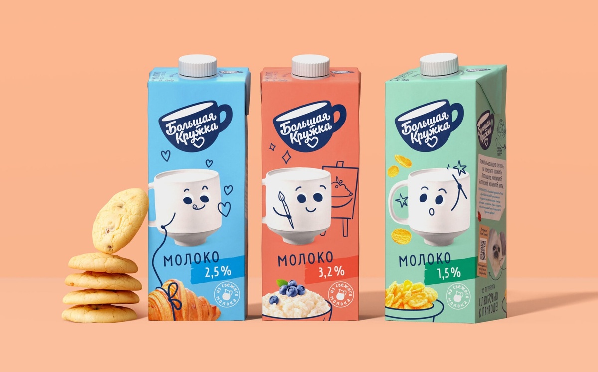 Бренд «Большая Кружка» компании «Галактика» существует с 2005 года и является одним из ведущих игроков на рынке молочных продуктов северо-запада России. «Большая Кружка» обладает высоким знанием среди потребителей, которые ценят бренд за широкий ассортимент, высокое качество и добрый семейный образ. Под брендом выпускается более 50 SKU в двух продуктовых группах: традиционные молочные продукты и йогуртно-десертная линейка. В связи с планами по усилению дистрибуции до федерального уровня и расширению продуктовых линеек, а также из-за устаревающего образа бренда было принято решение о проведении ребрендинга, над которым работала команда Mildberry. В соответствии со стратегией бренд «Большая Кружка» выходит на ценностный уровень позиционирования и расширяет свою миссию: вдохновлять на проявление доброты и заботы. Простая мысль, что мир стал бы лучше, если бы каждый из нас проявлял больше заботы о других, легла в основу идеи дальнейшего развития бренда: «больше любви и добрых дел».