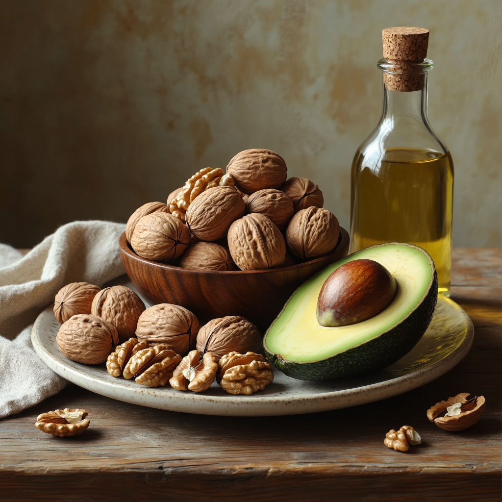 - полезные жиры (оливковое масло, орехи, авокадо);