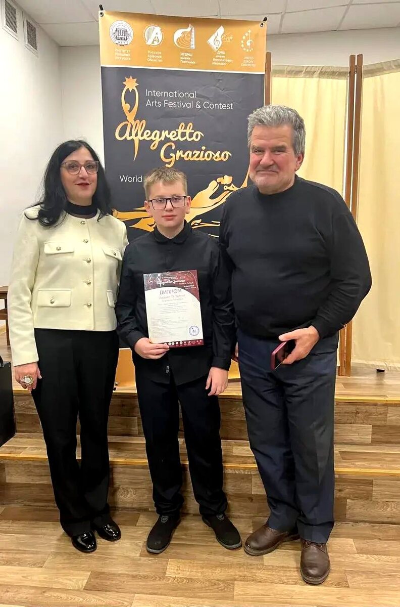С. 👩🏫) вновь порадовал нас блестящим достижением! 🌟 Михаил стал Лауреатом II степени на престижном Международном конкурсе искусств Allegretto Grazioso! 🏆 От всей души поздравляем Михаила с заслуженным успехом! Желаем неиссякаемого вдохновения, новых творческих свершений и дальнейших успехов на этом прекрасном пути! 🎊💖 #Школа1409 #ТалантливыеДетиМосквы