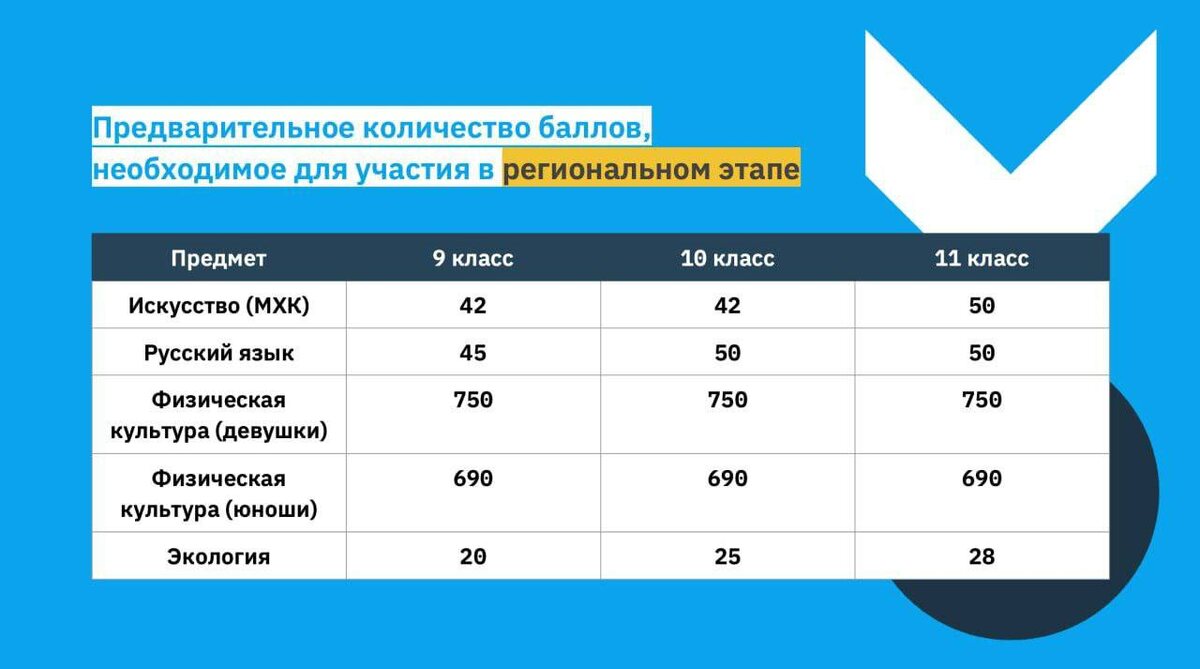 ⚡️Новые проходные баллы на региональный этап по 4-м предметам ВсОШ