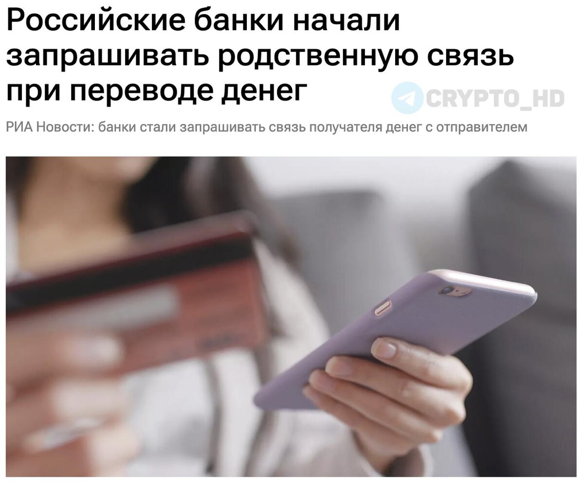 ) ▪ При переводе крупной суммы операция блокируется. ▪ С клиентом связывается сотрудник банка. ▪ Просят указать полные данные получателя. ▪ Запрашивают родственную связь между отправителем и получателем. ▪ Уточняют цель перевода и на что пойдут деньги. Меры связаны с ростом мошенничества и социальной инженерии. Банки пытаются убедиться, что перевод совершается добровольно, а не под давлением. Ранее: - теневая платежная сеть - лимиты на количество банковских карт - P2P-сделки - ограничения на переводы - дропперы - всё Crypto Headlines
