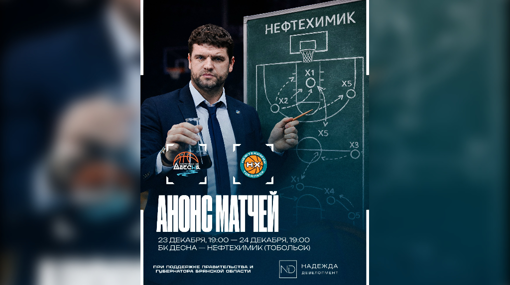 В гости приедет тобольский «Нефтехимик». Игры пройдут 23 и 24 декабря. Вырвавшаяся в лидеры чемпионата России по баскетболу FONBET Высшей лиги брянская «Десна» завершит календарный год домашними матчами с тобольским «Нефтехимиком». Игры пройдут 23 и 24 декабря. Начало обоих поединков в 19:00. В прошлом году сибиряки стали серебряными призерами турнира. В этом наши ближайшие соперники пока выступают ни шатко ни валко, занимая пятое место с паритетом побед и поражений. «Десна» же после двух уверенных побед над лидером возглавила турнирную таблицу. Возрастное ограничение 6+ Вырвавшаяся в лидеры брянская «Десна» закроет год домашними матчами
