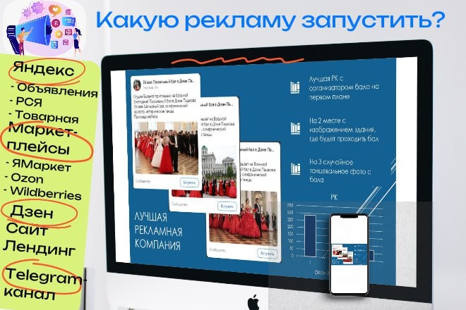 ? Зависит от того что продаете и в какой области: Для Товаров подойдет: 🔵Яндекс Директ Товарная компания. РСЯ. 🔵Маркетплейсы Маркет, Ozone, Wildberries 🔵Aвито 🔵Реклама у блоггеров Для услуг подойдёт: 🔵Яндекс Директ Универсальные объявления. РСЯ. Лендинг. 🔵Дзен 🔵Telegram канал 🔵Мессенджеры 🔵VK Реклама 🔵Telegain 🔵Telegram Ads (высокая цена входа) Какие виды рекламы по целям бывают? Для охвата и имиджа: 🔵Медийная реклама: баннеры, видеоролики. Всегда оплата за количество показов. Какие задачи решает: повышает узнаваемость бренда, информирование широкой аудитории о продукте/новая ниша, уникальный товар, сложный продукт Для продажи конкретного товара или услуги: 🔵Контекстная. На людей которые сами ищут нужный им товар услугу. Подбор по ключевым запросам, например: купить айфон 17, услуги груминга в Москве. Площадка: Яндекс Директ. Оплата за нажатие/переход или достижение цели: оставить заявку, звонок, заполнить форму на сайте, скачать программу, провести больше 5мин на с