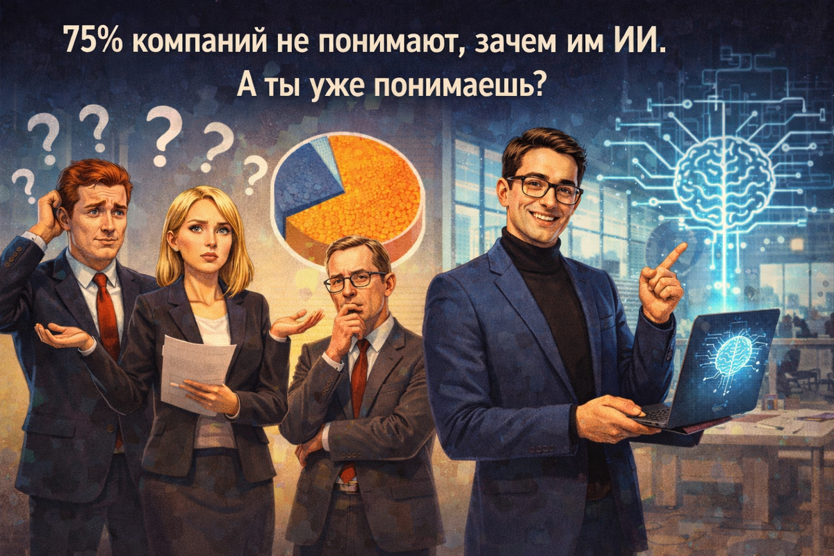Оказалось, три четверти российских компаний вообще не понимают, зачем им искусственный интеллект. То есть слово модное, бюджеты где‑то крутятся, а конкретных задач — ноль. И я такая читаю это и думаю: «Окей, а мы с вами как раз те странные люди, которые пытаются разобраться до того, как это станет обязаловкой». А выгода тут очень приземленная. Пока крупный бизнес теряется, маленькие команды и соло-предприниматели могут спокойно забирать себе преимущество. По-простому: если ты умеешь объяснить нейросети, что тебе нужно, ты делаешь то же самое, что отдел из 3–5 человек — только быстрее и дешевле. Не нужно “внедрять ИИ в компанию”, достаточно решить одну конкретную боль: тексты, отчеты, визуал, ответы клиентам.