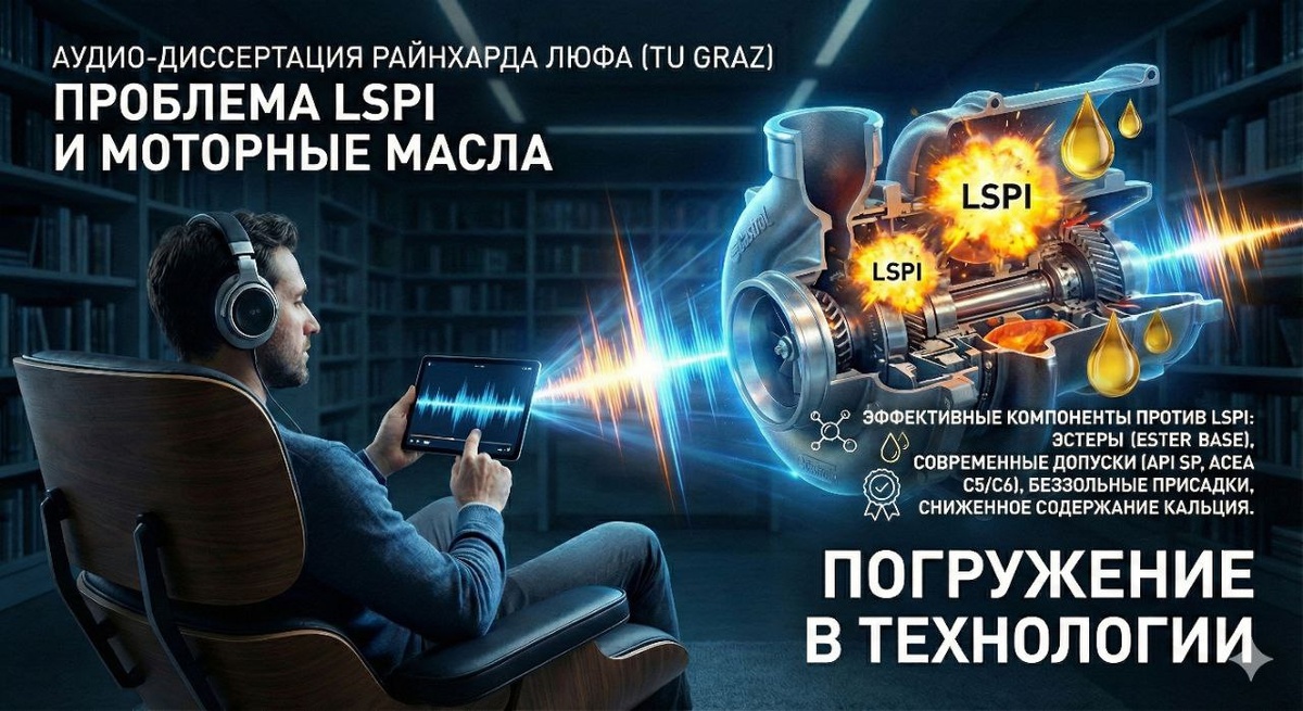 интересной и живой форме. Это не реклама, это просто находка. Чтобы протестировать не просто «на фоне», а с максимальной пользой, предлагаю послушать материал по фундаментальной работе — диссертации Райнхарда Люфа, представленной в Техническом университете Граца (TU Graz). 🔥 Тема: Преждевременное воспламенение смеси (эффект LSPI) в современных бензиновых турбомоторах с непосредственным впрыском. Эта проблема критически важна из-за жёстких экологических требований, но, к сожалению, часто недооценивается владельцами авто. О чём речь в исследовании: Работа посвящена тому, как именно моторное масло влияет на аномальные процессы сгорания. Это идеальное сочетание теории, инженерной практики и химии масел. В центре внимания: 🔹 Разработка специализированного испытательного стенда. 🔹 Применение дозирующих насосов для точного моделирования условий LSPI. 🔹 Результаты лабораторных анализов и влияние конкретных компонентов (эстеры, пакеты присадок). *На изображении я вынес ключевые факто