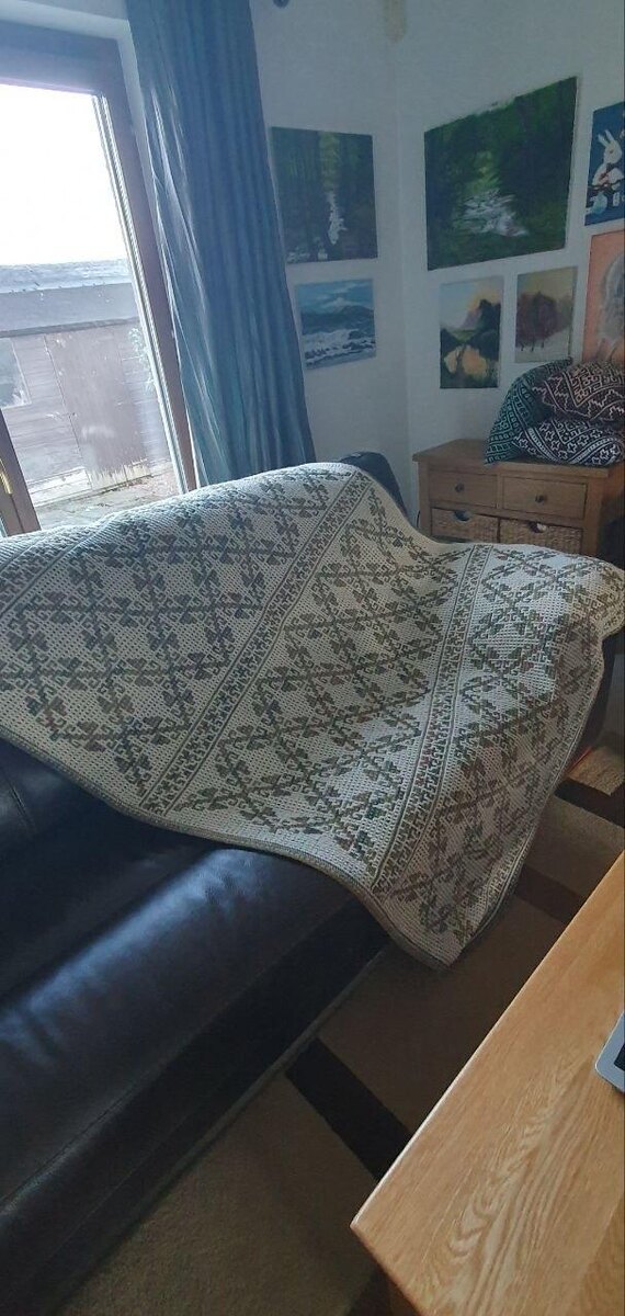 ». Новости наших чатов Участница чата «Самый нескучный плед» Севда выложила фото своего пледа – и это прекрасная возможность посмотреть узоры в деле. Отличный пример одновременной гармоничной игры цветочных зигзагов и бордюров. Спасибо за эту работу! И подушки, подушки на фоне❤️ Севда: «Хочется показать узор в пледе из книги Юлии "Самый родной узор". Получила море удовольствия от работы».
