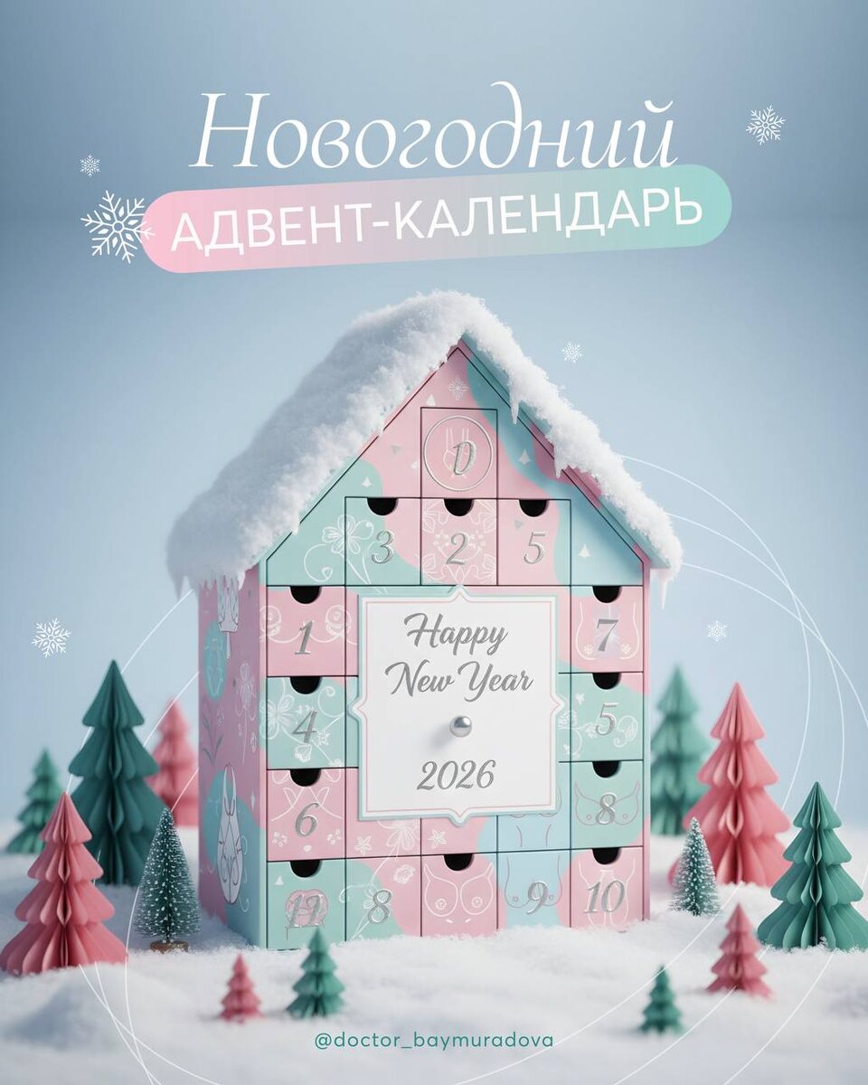 Именно поэтому я создала для вас адвент-календарь. Каждый день вас будут ждать небольшие, но ценные подарки: чек-листы, понятные разборы, полезные материалы, которые помогут лучше понять своё тело. Мне искренне хочется, чтобы информация, которой я буду делиться, стала для вас поддержкой. Пусть этот адвент будет не просто календарём, а маленьким шагом к осознанному и бережному отношению к своему здоровью 🌸