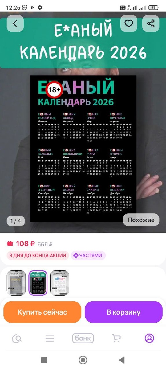 🚩🚩🚩🚩🚩🚩 Всем привет на этой ветке форума. Сегодня я на работе: утром забрала справку о составе семьи (нужна в военкомат), а также получила заказ на 🛒: пришел долгожданный фотоальбом. Кстати, вчера я уже забрала фотобумагу и мы весь вечер печатали фото 👍Я очень довольна. Сегодня из трат был календарь за 108 рублей. Очень понравился именно этот😁 Кроме того, после работы тоже будут траты: нужно купить фрукты, молоко и яйца.