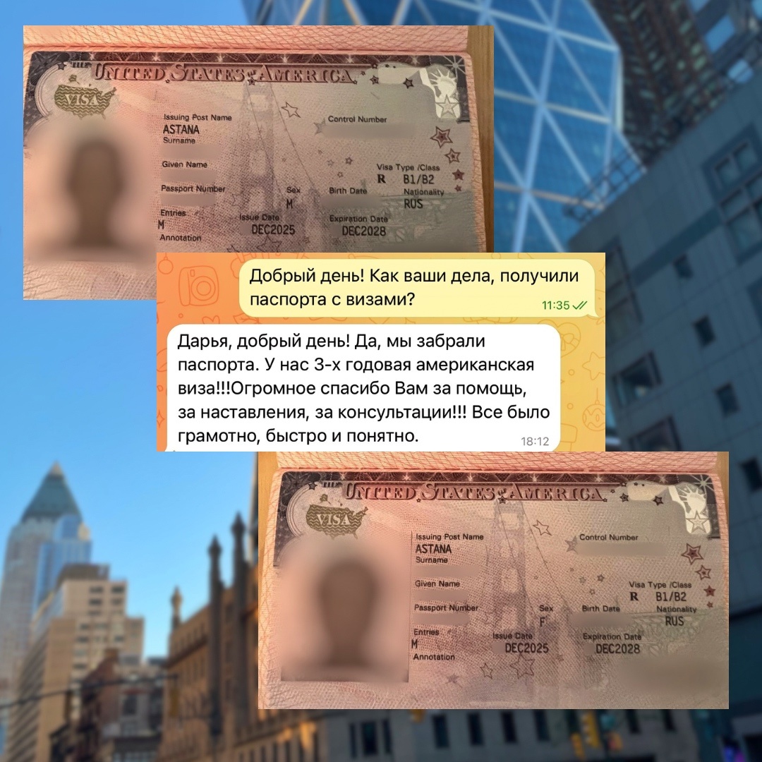 Визы B1/B2 одобрены на максимально возможный срок для граждан РФ - это 3 года! Наслаждаемся фотографиями свежих виз и желаем отличных поездок в США! И благодарим за отзыв! Заявители обращались за "Полным сопровождением", мы прошли вместе весь процесс от анкет и записи до репетиции собеседования! Действуйте! Контакт того самого визового специалиста - Дарьи в нашем телеграм канале GOOD VISA USA: #визасшавизасшасобеседованиенарусском #визасша #туристическаявизасша #какполучитьвизусша #визасша2026 #американскаявиза #визасшаб1б2 #визасшароссиянам #визасшарусским #какоформитьвизусша #гостеваявизасша #визавамерику #советыповизесша #ОформлениевизыСША #ВизаСШАдлягражданРоссиизаграницей #визасшасрочно #визасшабыстро #ВизавСШАдлягражданРФ #визасшаказахстан #визасшародителям #визасшапенсионерам #визасшарф #визасшароссия #визасшаастана #визасша2026 #ребеноквсша #родственниквсша #шансынавизусша #вгостиксынувсша #вгостикдочеривсша #визасшаприглашение #историяполучениявизысша #историяподачинавизусша