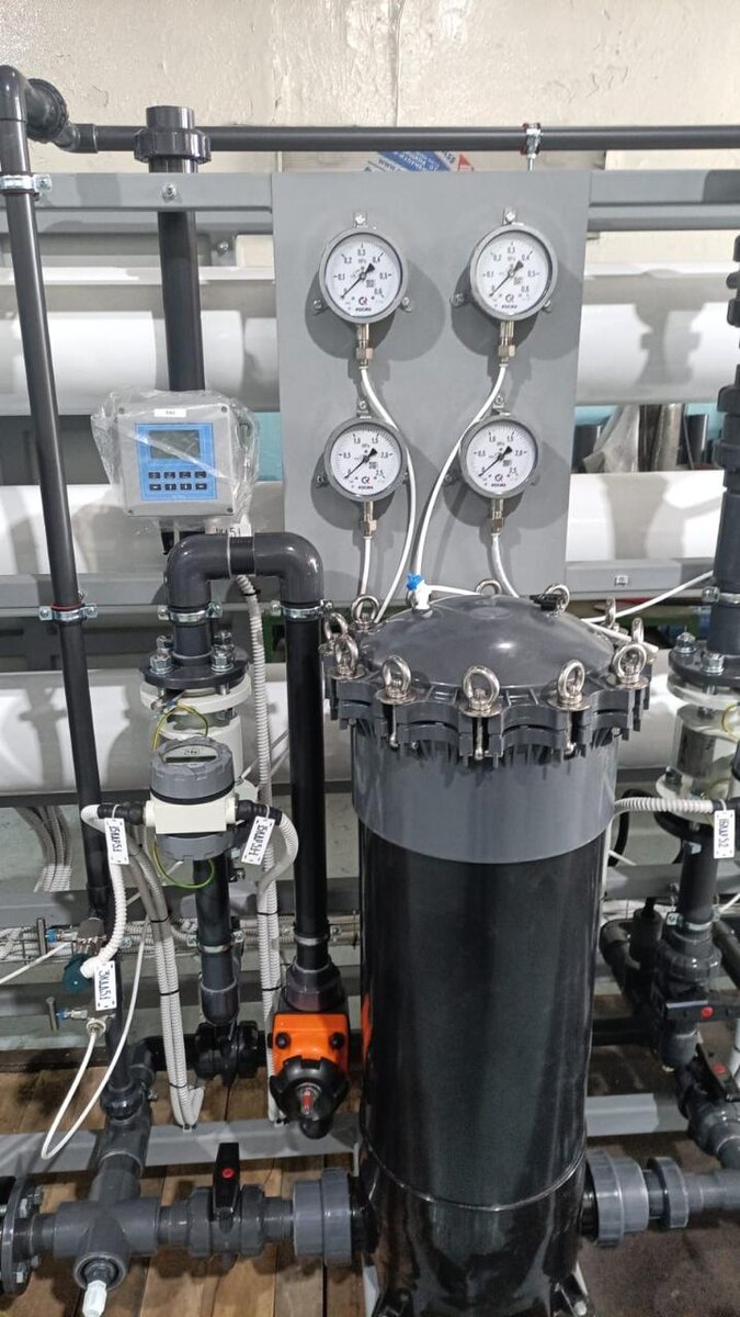 3. Снижение фактической производительности может быть обусловлено не только температурой исходной воды, но и постепенным загрязнением рабочей поверхности мембраны. Это происходит в тех случаях, когда исходная вода не проходит предварительную очистку от взвешенных веществ, а установка не имеет в комплектации картриджного фильтра, а также в случаях, когда жесткость исходной воды превышает 3 мг*экв/л, а предварительное умягчение или дозирование ингибиторов отложений не производится. Большинство изготовителей указывают в описании установок функцию автоматической промывки мембран, рассказывая, что это позволяет смывать загрязнения с мембран, но на деле, это не совсем так: автоматическая промывка – безусловно необходимая и полезная функция, но ее основная задача – исключить длительное пребывание мембраны в стоячей воде, чтобы избежать образования бактериальной пленки (т.н. биообрастание), вторая функция – вытеснение концентрата из мембранного элемента более разбавленной (в сравнении с концентратом) исходной водой, что снижает интенсивность образования осадка на поверхности мембраны при простое без работы. Но эффективность автопромывки для удаления загрязнений мембраны механическими примесями очень низкая, а для удаления отложений солей жесткости – еще ниже. Все это приводит к тому, что уже через два-три месяца работы установки возникнет необходимость проведения химической промывки мембран раствором гидроксида натрия и раствором лимонной кислоты. Эти промывки неизбежны, но правильно подобранная установка требует их не чаще одного раза в год-полтора, в то время как установка, купленная по привлекательной цене будет требовать химическую промывку каждый месяц (не стоит забывать, что каждая химическая промывка снижает селективность мембраны, а слишком частое их проведение приводит к необходимости замены мембраны уже через год, в то время как качественная установка способна работать без замены мембран до 5 лет). Чтобы избежать подобной ситуации, необходимо понимать, какого качества исходная вода будет подаваться на установку. Если исходная вода не проходила ультрафильтрацию – наличие картриджного фильтра с рейтингом не более 5 мкм обязательно в комплекте установки. Если используется водопроводная вода, содержащая хлор, Вам необходимо выбрать установку, в которой кроме картриджного механического фильтра будет присутствовать сорбционный угольный фильтр. Если жесткость исходной воды превышает 3 мг*экв/л (а, по нормам СанПиН 2.1.4.1074-01 для централизованного водоснабжения допускается до 7 мг*экв/л), то исходная вода должна быть предварительно умягчена на катионитной смоле, но вместо использования относительно крупногабаритных установок умягчения в большинстве случаев подойдет компактное решение, состоящее в дозировании раствора антиcкаланта. В любом случае, стоит отдавать предпочтение тем установкам, которые предусматривают возможность проведения химической промывки без необходимости извлечения мембраны.