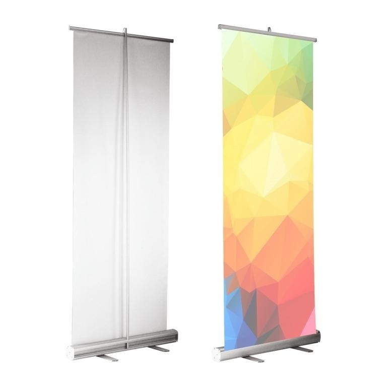 Мобильный стенд roll up – мобильный раздвижной рекламный стенд, название которого происходит от английского «свернуть» или «закатать». По переводу легко понять, как стенд выглядит: это плакат, который разворачивают и крепят на легкий каркас. Благодаря малому весу и небольшим размерам, конструкцию удобно брать с собой на мероприятия, монтировать на месте (на это уходит всего несколько секунд) и хранить. Многие магазины и салоны используют ролл-ап рядом с точками продаж, устанавливают рядом со входом на улице.