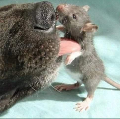 А крысёнок, он тогда безмятежно спал, проснулся и лизнул собачий нос: ой, а ты кто такой большой?