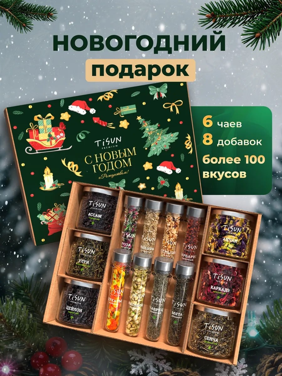 Набор чая подарочный включает 6 стеклянных банок объемом 200 мл, каждая из которых содержит базовые чай черный листовой, чай зеленый листовой, каркаде, анчан и восемь пробирок высотой 13 см с разнообразными добавками, включая имбирь, цедру апельсина, мята, барбарис, цукаты, роза, жасмин и чабрец для творческих купажей на ваш вкус. 💸 1029 руб. 🛒 https://www.wildberries.ru/catalog/588987206/detail.aspx?targetUrl=SN