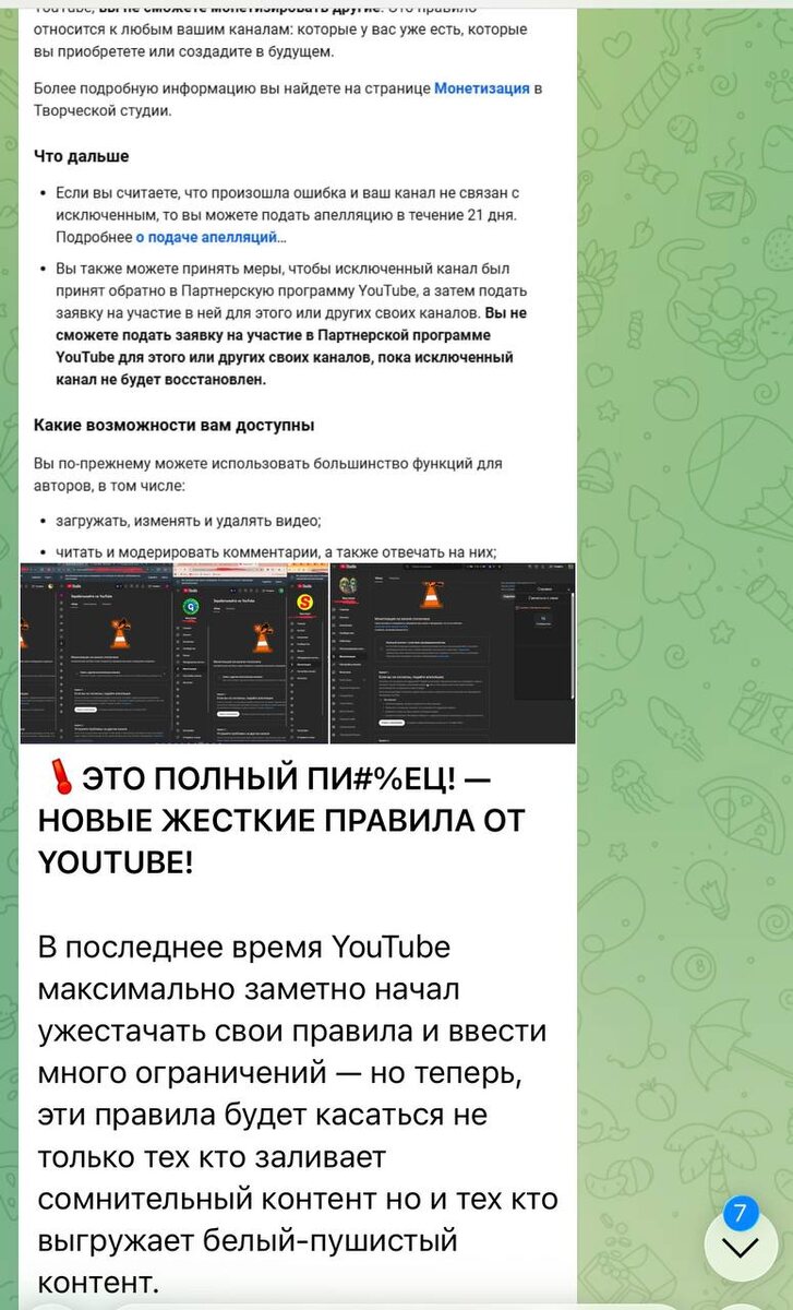 А ТЕПЕРЬ ДО КОГО-ТО ДОШЛО. Сейчас по Telegram начали массово расходиться скрины и «открытия»: 👉 если на одном канале отключают монетизацию или канал банят, 👉 все остальные каналы, подключённые к тому же AdSense, 👉 автоматически вылетают из Партнёрской программы YouTube или попадают в бан без возможности восстановления. И люди вдруг «проснулись». Начали писать: «А что происходит? А почему так?» 📌 Отвечаю спокойно и по фактам: это происходит УЖЕ ДАВНО. Просто раньше многие делали вид, что «пронесёт». Что реально происходит YouTube: — больше не рассматривает каналы по отдельности, — он смотрит на AdSense как на единый риск-профиль, — один проблемный канал = цепная реакция по всем. Не важно: — за что отключили монету или забанили любой подключенный канал — белый контент или «пушистый» у соседей — намеренно или «по ошибке» Факт один: 👉 один канал падает — падают все. К чему это приведёт Все «конторы», которые: — подключают десятки и сотни каналов к одному AdSense — продают «бе