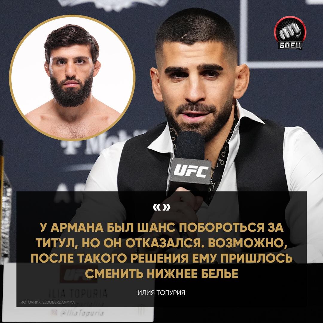 Еще порция высказываний от Топурии. Илия обвинил Царукяна в трусости из-за снятия с титульного боя в начале года 👀🤷♂️