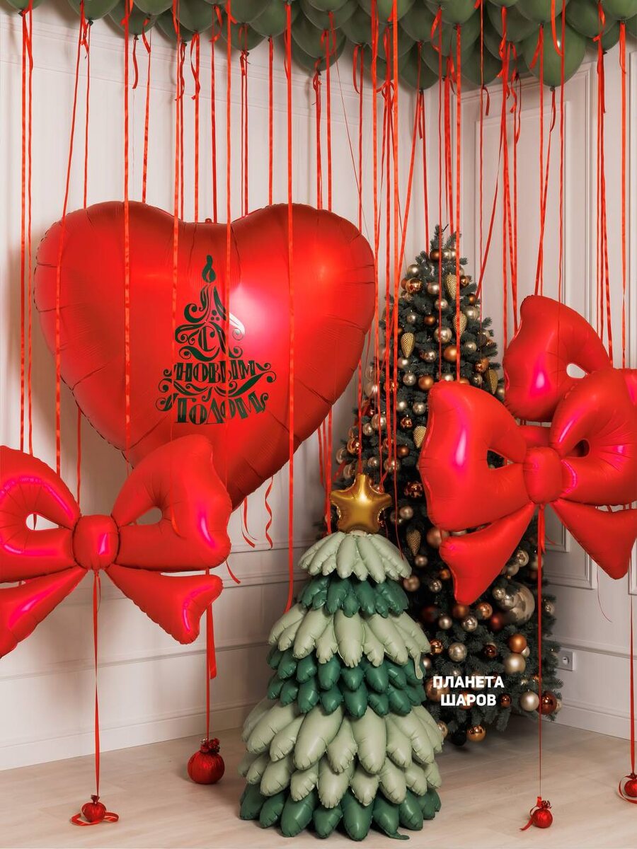 ОГРОМНОЕ СЕРДЦЕ, БАНТЫ И ЁЛОЧКА, А ТАКЖЕ ШАРЫ ПОД ПОТОЛОК НА НОВЫЙ ГОД🎀