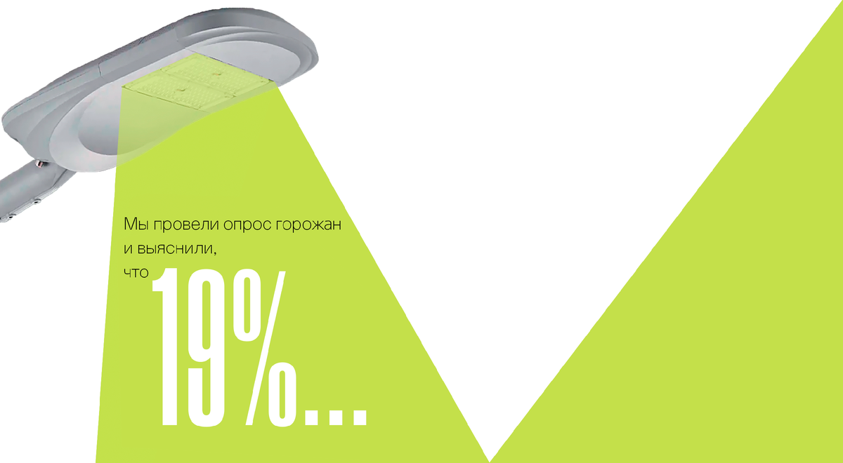 Чтобы узнать ответ на этот вопрос, наша команда провела опрос среди россиян крупных и средних городов. Мы спросили у горожан, чего им не хватает в благоустройстве. На первом месте оказался именно недостаток уличного освещения. На эту проблему указали 19% респондентов.