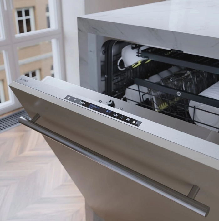 Asko DFI544B — полноразмерная встраиваемая посудомоечная машина с полной интеграцией в кухонный гарнитур. Модель рассчитана на загрузку до 14 комплектов посуды и ориентирована на регулярное использование в домашних условиях. Конструкция построена с упором на надёжность узлов, стабильную гидравлику и точный контроль параметров мытья и сушки.