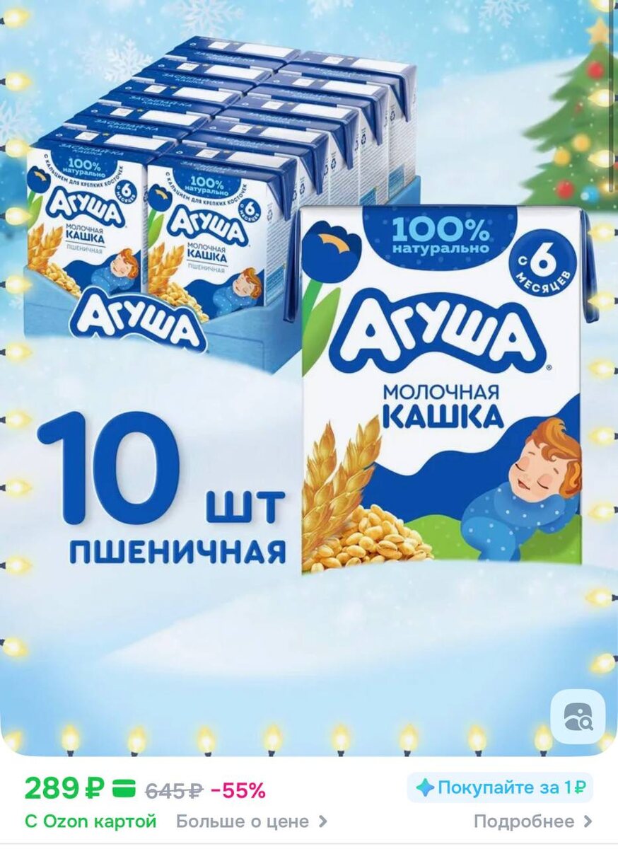 Каша детская жидкая молочная пшеничная Агуша, с 6 месяцев, 200 г, 10 шт.
