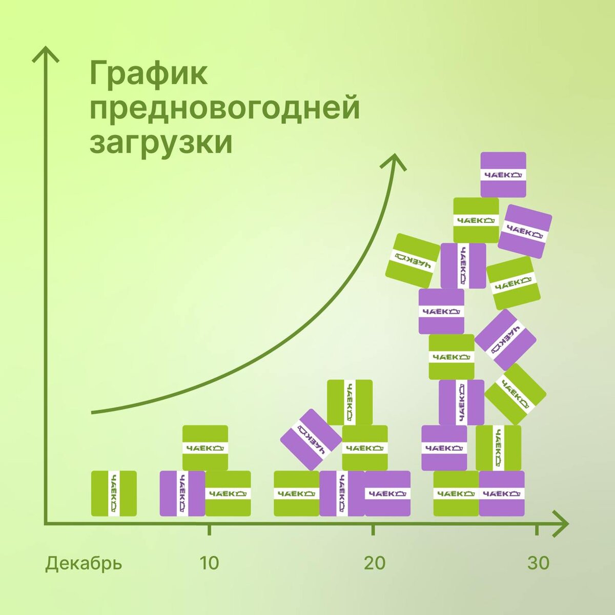 ! Предновогодняя суета уже вовсю, и наша загрузка растёт с каждым днём часом. Мы отправляем заказы вплоть до 30 декабря, однако чтобы любимый чай или посуда в подарок успели к вам до боя курантов, рекомендуем оформить заказ заранее! Мы продолжим обрабатывать ваши заказы с 4 января. С любовью, ваш ЧАЁК 💚