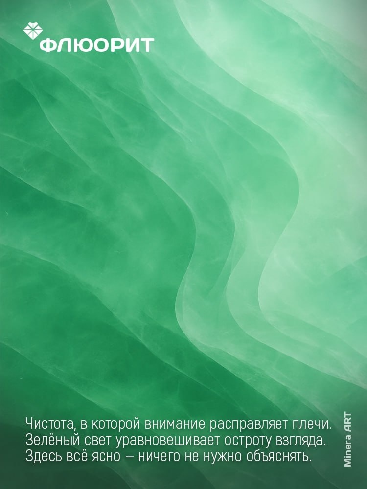 Он может быть зелёным, фиолетовым, голубым, иногда прозрачным, будто стекло. Но самое удивительное в нём — то, как эти цвета переходят друг в друга: плавно, мягко, словно дыхание. На ощупь он прохладный, гладкий, немного хрупкий. В каждой бусине свой узор: то полосы, то плавные размывы, как в акварели. Это камень переменчивости, и в этом его красота — он никогда не бывает одинаковым. Берёшь его в ладонь и понимаешь: «Жизнь — это всегда движение цвета». ___________ Minera ART — направление, в котором мы пробуем почувствовать каждый минерал — и делимся результатом в своей группе.