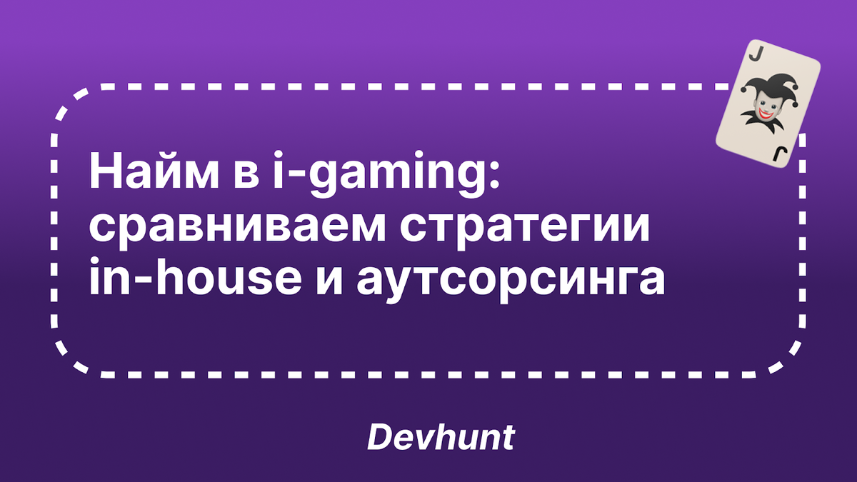 В iGaming рекрутменте вопрос «аутсорсинг vs in‑house найм» почти всегда решает не только бюджет, но и скорость закрытия вакансий, качество кандидатов и эффективность команды. Особенно это важно для non‑tech ролей: sales, HR, digital, marketing и operations. В этой статье рекрутеры Devhunt рассказывают про плюсы и минусы подходов к найму и показывают, как агентство помогает закрывать сложные позиции в iGaming. iGaming — это не только разработка, это также: Правильный подход к найму определяет, сколько времени и ресурсов компания потратит на привлечение нужных специалистов и как быстро они смогут влиять на бизнес. In‑house найм означает, что компания строит собственный HR‑отдел и самостоятельно закрывает вакансии. Когда in‑house работает лучше всего: Аутсорсинг найма — это привлечение внешних экспертов (рекрутинговых агентств вроде Devhunt), которые берут на себя поиск и первичную оценку кандидатов. Когда аутсорсинг все-таки выигрывает: Скорость закрытия вакансий Затраты на HR‑функцию Д