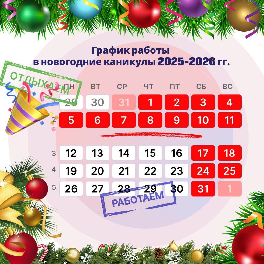 1. Офис: - 30 декабря 2025 года: с 10:00 до 16:00; - 31 декабря 2025 года: выходной день; - 1–11 января 2026 года: выходные дни (1, 2, 3, 4, 5, 6, 7, 8, 9, 10, 11 января); - 12 января 2026 года: работа в обычном режиме. Примечание: в выходные дни телефоны офиса могут быть не доступны. Вопросы можно оставить: - в chat‑bot; - по телефону диспетчера. 2. Аварийная бригада: - работает круглосуточно (24/7) в выходные и праздничные дни; - номер диспетчерской для аварийных заявок: 8‑999‑555‑67‑83; - заявки не аварийного характера отрабатываются с 12 января 2026 года. 3. Уборка в домах и на придомовых территориях: - 30 декабря 2025 года: - ежедневная уборка первых этажей; - еженедельная уборка квартирных и лифтовых холлов (по графику МКД); - 31 декабря 2025 года: ежедневная уборка первых этажей; - 1–4 января 2026 года: выходные дни (1, 2, 3, 4 января); - 5 января 2026 года: выход клинеров на работу (по графику МКД). 📱 Мы в МАХ 📱 Мы в Vk 💌 Написать нам 🥰 Оставить отзыв про УК ⚙️ Ежед