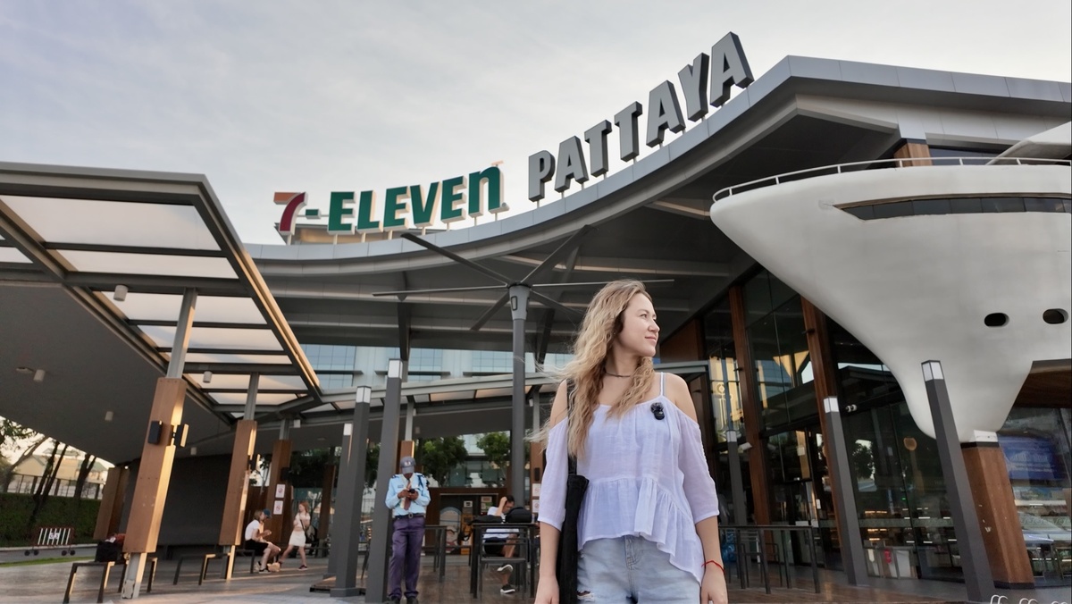 Легендарный двухэтажный 7-Eleven в виде круизного лайнера на South Pattaya Road манит туристов фотографиями и историями. Его называют самым большим в мире, морским приключением с роботом и гигантским экраном. Мы специально поехали туда на ужин, чтобы испытать этот аттракцион. Но реальность оказалась прозаичнее. Внешне здание и правда впечатляет: огромный белый корабль с иллюминаторами. Внутри — просторно и чисто, морской декор на стенах и правда есть. Но два главных «двигателя» этого шоу в день нашего визита молчали: · Гигантский экран, который должен был показывать подводный мир, был тёмным и пустым. · Робот, ездящий между стеллажами, замер в углу, отключённый. Вместо атмосферы футуристичного круиза мы получили просто очень большой, слегка тематический, но пустынный и тихий супермаркет. Раз уж аттракцион не работал, мы сосредоточились на главном — еде. Наш ужин был обильным: · Омлет с рисом и беконом — Сытный, простой. То, что нужно для быстрого перекуса. · Хот-дог — Стандартн